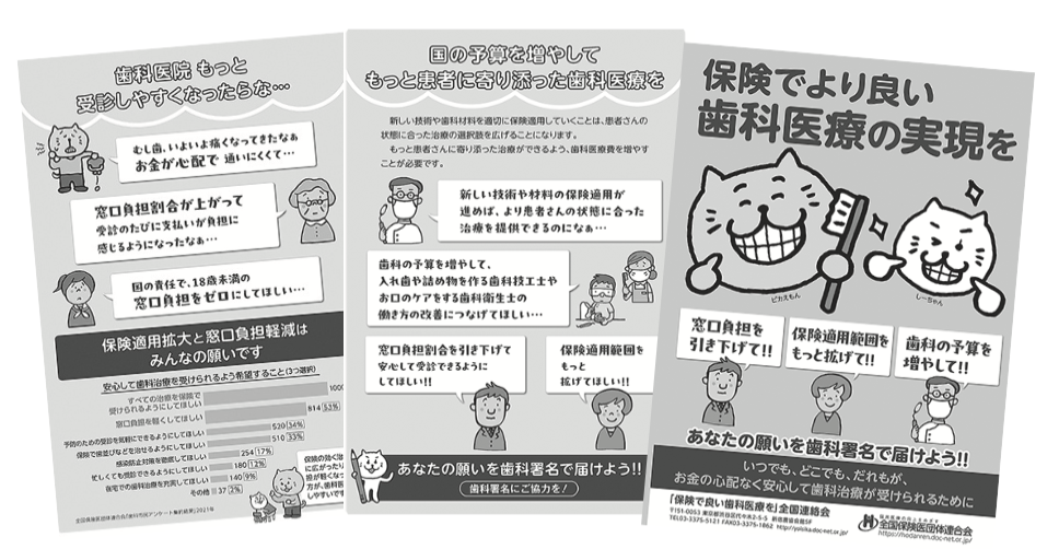 協会・保団連は、従来の健康保険証を使い続けられるようにすること、保険でより良い歯科医療を実現すること、を求める2つの新たな署名に取り組みます。