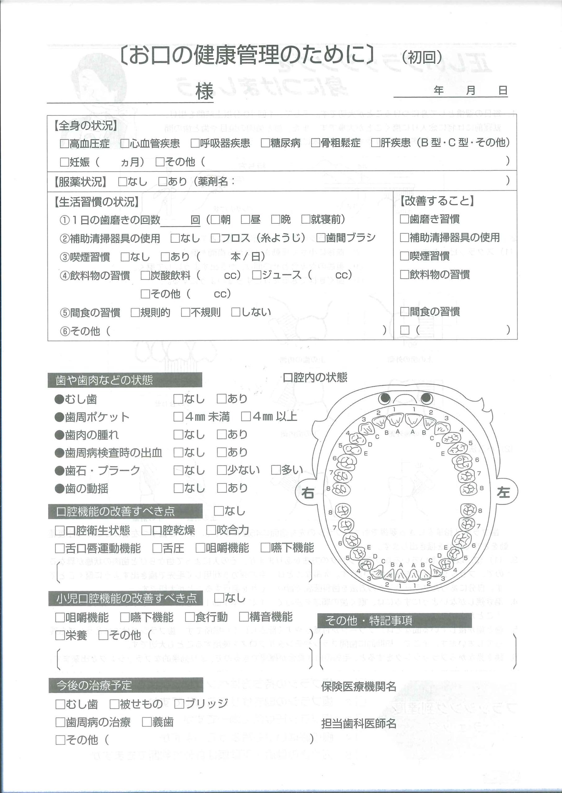 各種管理料等算定時の複写式患者向け提供文書。1冊50組綴り((1)は1枚当たり2組で計100組綴り)で大きさはB5判。①クラウン・ブリッジ維持管理に関する説明書、②歯科疾患管理計画書(初回用)、③歯科疾患管理計画書(継続用)、④申請有床義歯管理用、⑤歯科衛生実地指導に関する説明書、⑥訪問歯科衛生指導に関する説明書、の6種類。